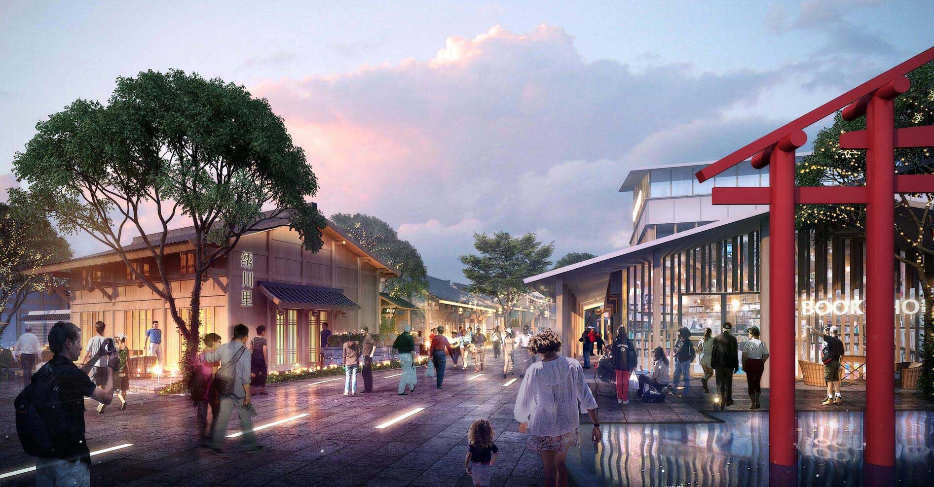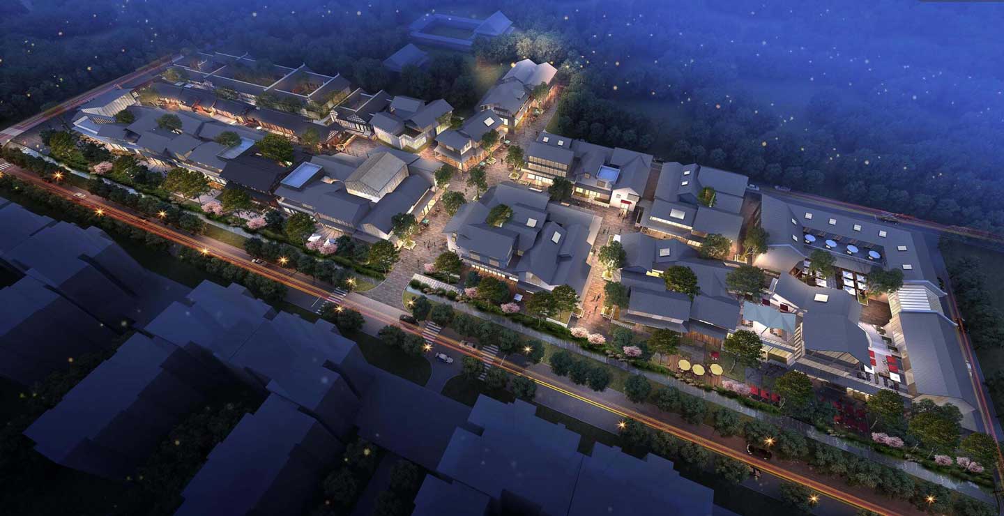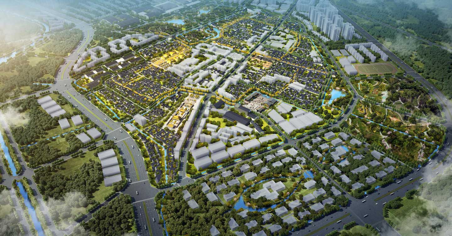 城廂天府文化古鎮位于成都東北部,是青白江區的下屬鎮,屬于成都一小時經濟圈范圍內。項目集文化、旅游、商業、城市功能配套于一體,聚焦“文旅商城”4 大功能區,以護城河串聯東湖、慶澤湖兩大景觀公園,打造風情繡川、1956文創園、千年西街等6大主題版塊。